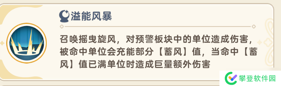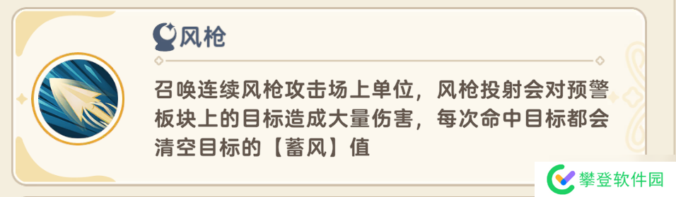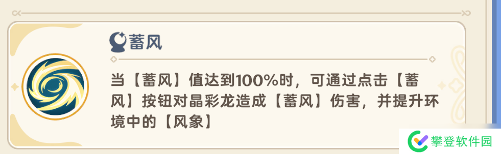 当第4块板块点亮完以后会在第一个板块开始按照点亮的顺序爆炸(伤害很小别怕),当你被炸到以后小图标(图二)就会充能25%,吃到4次爆炸就刚好100%点亮小图标:蓄风(图三),这时候就能释放技能。
