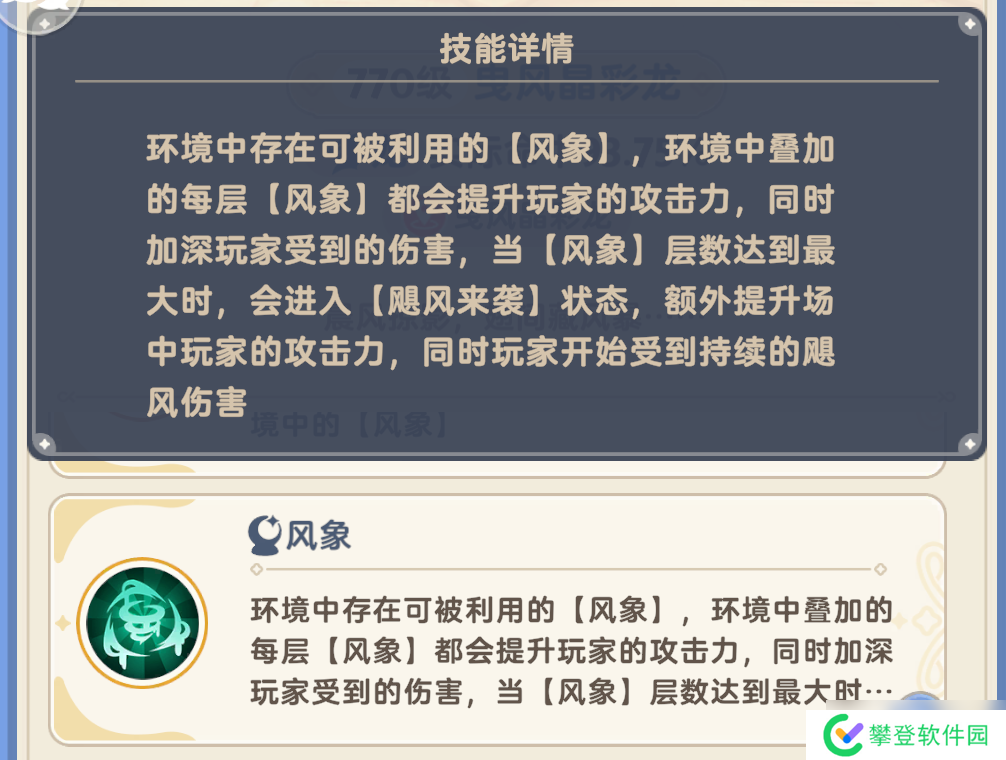 Boss释放技能以后会随机地图上出现横跨两个板块的AOE,如果被命中就会清空蓄风值