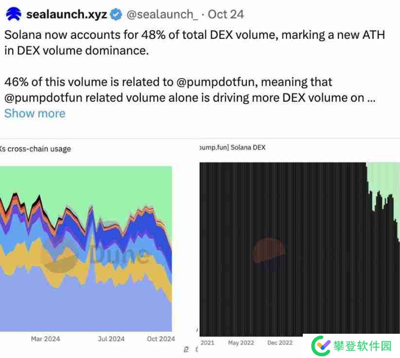 Solana 的大部分交易量来自流动性较差的池,其中相当一部分来自 Pump Fun。(链接)
