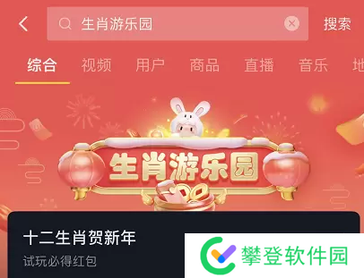 1.打开抖音,点击右上角【搜索】按钮,输入“生肖游乐园”进入即可进入游戏。