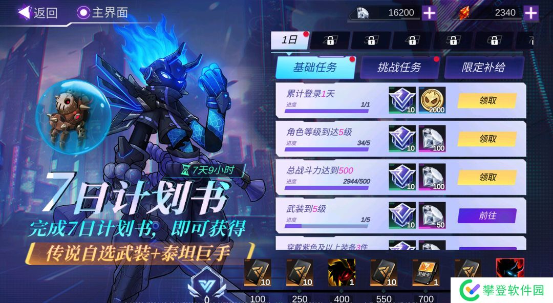 挑战主线章节,获取挑战经验,领取挑战计划奖励。可获得金币、钻石、作战芯片、N极管、武装芯片、机核芯片,还有超燃辅助机!,多种奖励等你来拿!