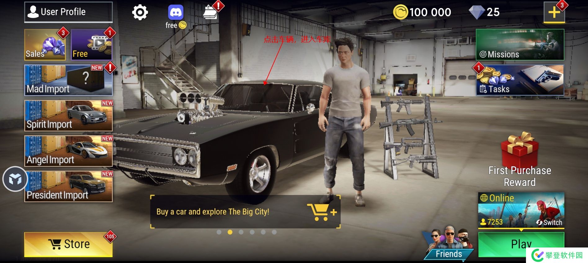1、进入到游戏主界面后,点击车辆,进入车库。