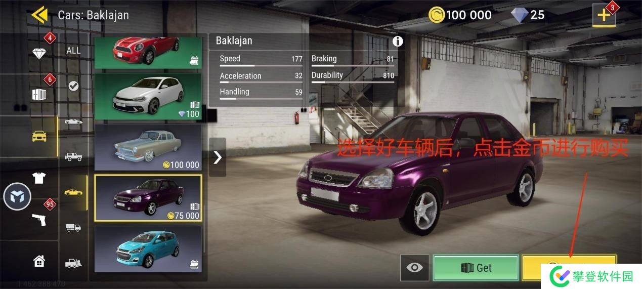 3、购买好车辆后,点击√图标,即可展示所购买的车辆。