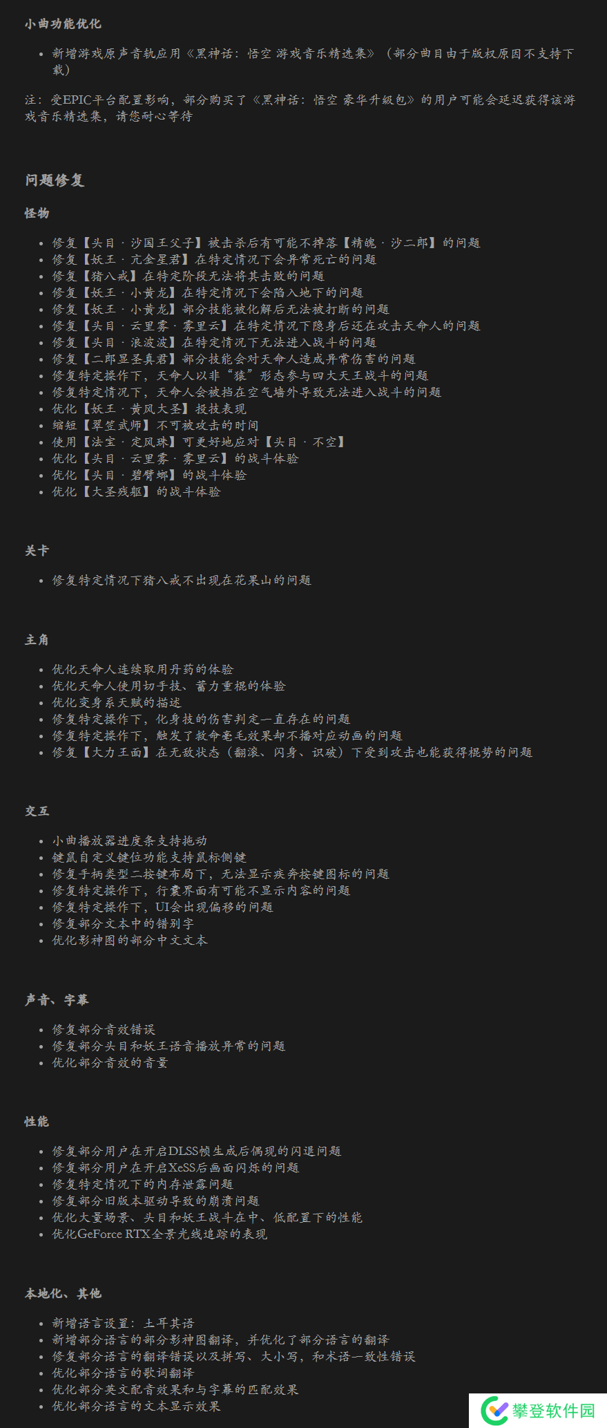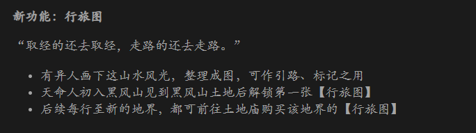 《黑神话:悟空》发布最新公告,将更新「Boss 挑战模式」、「行旅图」功能和全新披挂「彩金套装」等!新内容现已上线Epic平台,其它平台亦将陆续更新。以下是本次更新的主要内容以及具体内容,请点击大图查看哦!