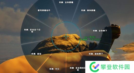 攻击:目标攻击,攻击你选择的目标,驯服后默认选择的,恐龙没像咱们这么聪明,它攻击都是不死不休的,所以经常会出现不听指挥情况,主动攻击就是四处搞事情,开启后看到动物就扑上去,口哨是不能控制主动攻击的,你需要对着恐龙打开右上角的恐龙图标,选择TARGET选项,它才会主动攻击。