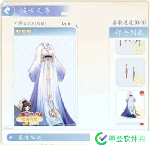 2、天尊的服装一共分为八个部位。可以自由组合搭配,这八个部位分别是:发型、头饰、首饰、颈饰、衣裙、外搭、妆容、特殊