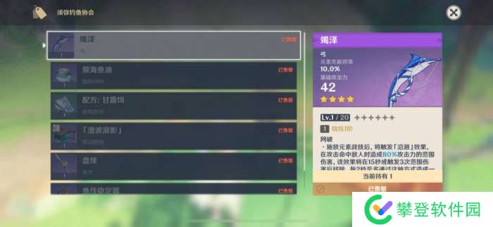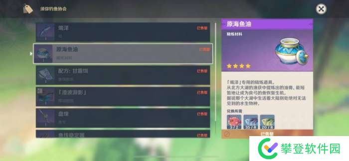 弓系武器竭泽的锻炼材料:原海鱼油(可兑4份)