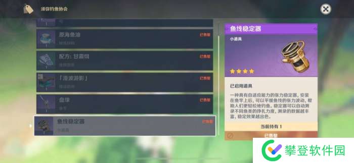 可兑换的小道具:鱼线稳定器(仅限一个,无关地区)