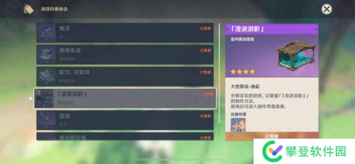 兑换所需的鱼:花鳉×20只、真果角鲀×20只、暮云角鲀×20只、吹沙角鲀×20只