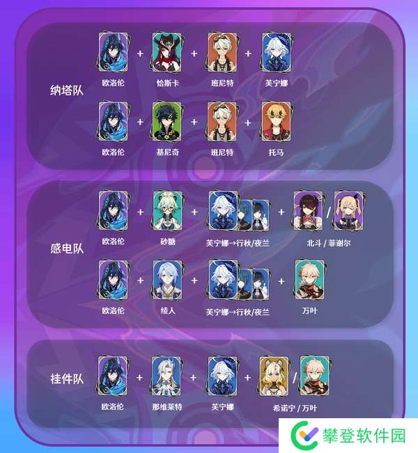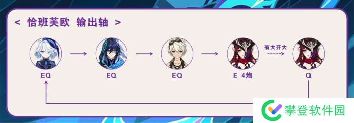 有两种打法,一种是欧洛伦要切出来eq的正常打法。另一种是欧洛伦不用切出来的纯挂件打法。挂件打法刚需希诺宁触发「夜魂迸发」让欧洛伦进入夜魂加持状态,然后才能后台消耗夜魂值触发天赋挂雷(只能触发一次天赋),从而触发烬城套。这队里希诺宁携带磐岩套,希诺宁打了两次e,一个是为了方便续磐岩,二个是为了进夜魂触发欧洛伦天赋续烬城。