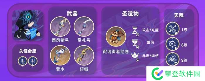 ·武器方面:首选西风/祭礼给队伍打球,想输出可以带任意五星双爆弓,平民首选暗巷/碎链(精通收益低,别带绝弦)。