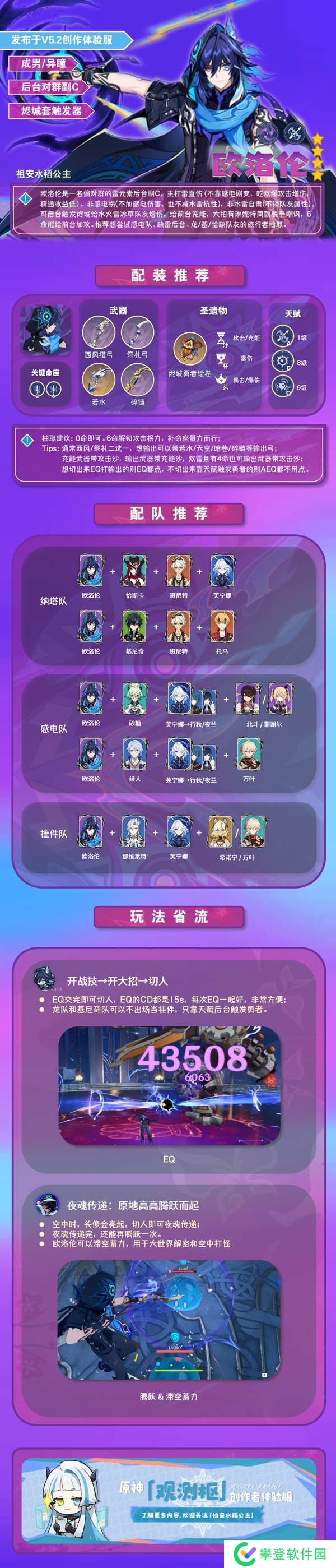 【 省流 】·整体来说,欧洛伦0命机制完整,优秀烬城套工具人,难得的脱手副C。强度上,是感电队优质队友(可平替菲谢尔/北斗),首个能拐基尼奇的纳塔队友,也是0命恰斯卡的优秀队友,同时还能解放龙队的万叶。跑图能力上,是优质跑图组件,配合恰斯卡/基尼奇可以长时间在空中移动跑图。命座提升稳定,不用强抽满命,但命座越高自然越好。