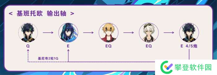 基尼奇燃烧队,基尼奇目前没有能给他吃烬城的辅助,同时吃不到万希芙这种增伤拐,很缺增伤队友,欧洛伦作为烬城工具人入队:基尼奇q提前开大挂草,欧洛伦e打激化触发烬城(欧洛伦不能开q,否则后续会断燃),托马eq套盾+减草抗,不能退eq加攻,基尼奇e aae*n.