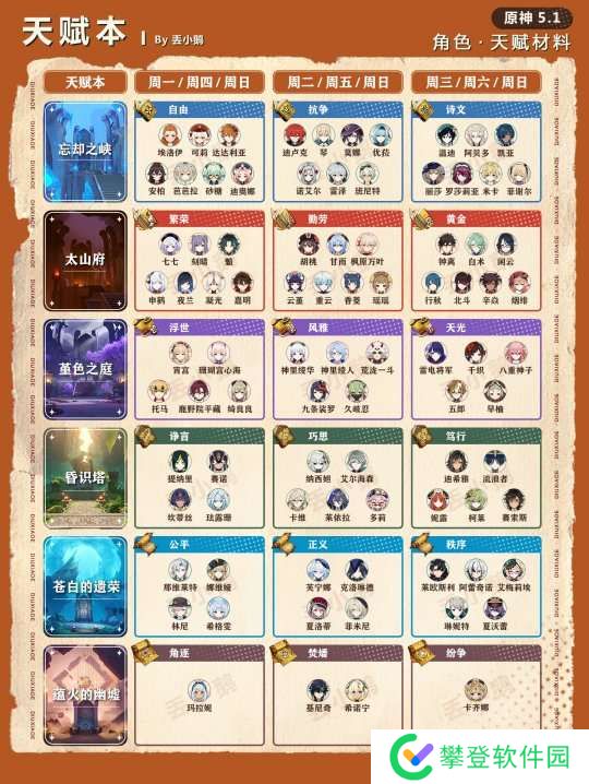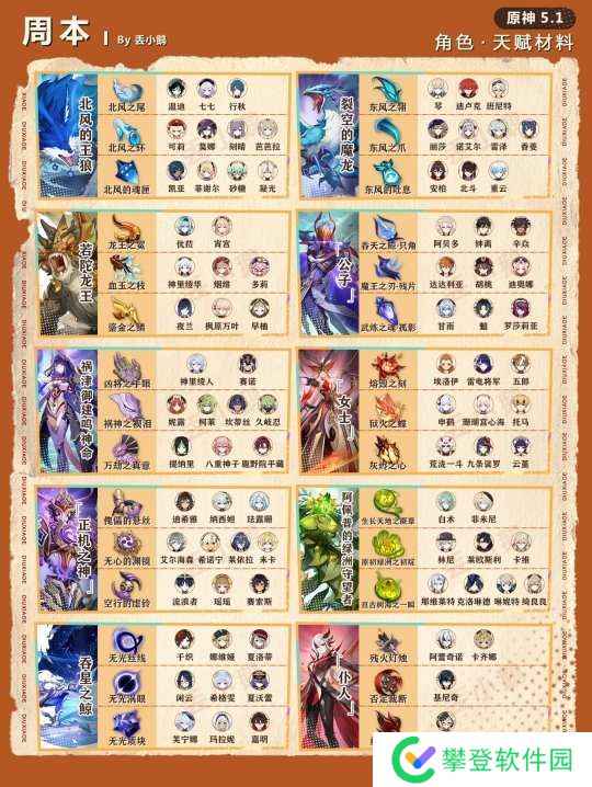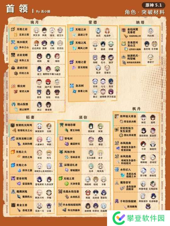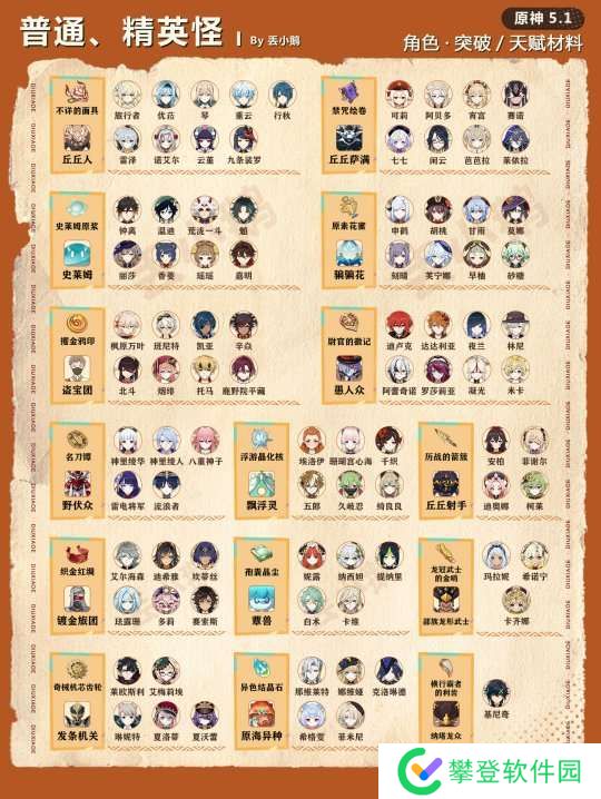 旅行者好,本期为你带来【原神5.1】全角色突破/天赋材料一览表。