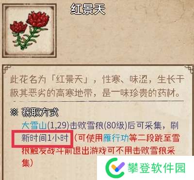 采红景天技巧:如果打不过80级的狼,在打狼的瞬间按保存键,退出游戏重新进入就站在狼身上了,可以采集红景天,两根手指操控成功率高;