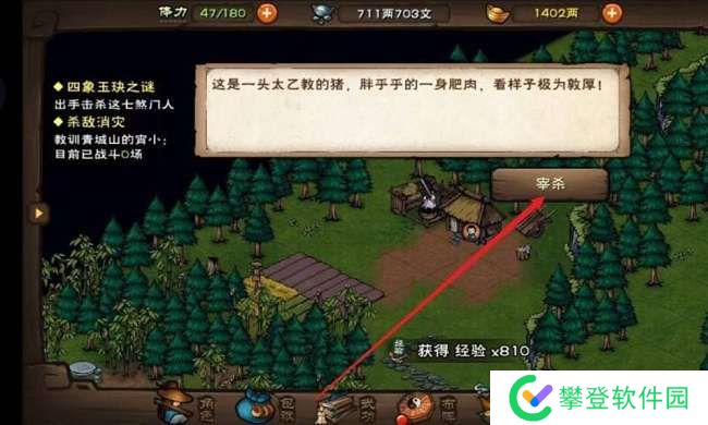 5、杀牛杀猪,牛圈有12个,猪有3个,转地图一圈杀个遍收入大概在1两500文。一天刷12次,一个小时刷新一次,一天约18两。但要注意的是,练解牛刀法没有杀牛收入,入太乙不能杀猪。