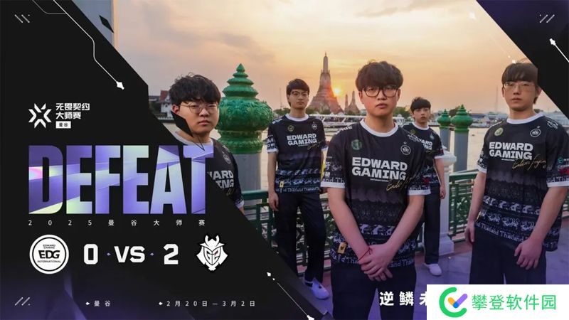 2025 VCT 曼谷大师赛,胜者组决赛,EDG与G2迎来了二番战,最终准备更加充分的G2,直落两盘击败了瑞士轮曾经击败过自己的EDG,晋级总决赛。而EDG则是跌入败者组,明天EDG将要与VIT和T1的胜者,进行一场BO5败决。