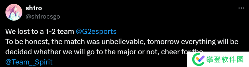 老实说这场比赛令人难以置信,明天的决胜局将决定我们能否打进Major。请为Spirit加油。