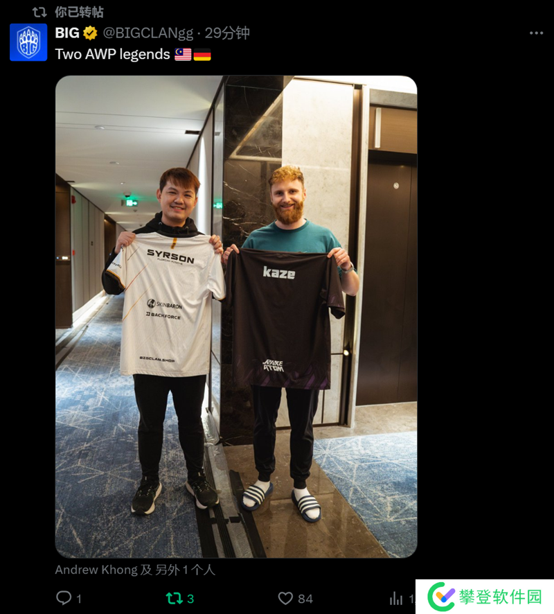 日前BIG战队官方账号在社交平台上发布动态,表示两位传奇狙击手见面。照片中的内容是
