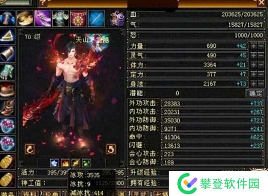 先来看看面板:角色当前的状态为:血量20万,蓝量15.8万,外功攻击2.8万,命中4.1万,闪避1.3万,会心攻击223,会心防御169,冰攻击3505,减冰抗414,减冰抗下限18。