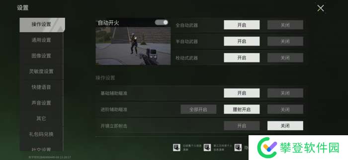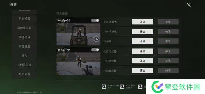 一键开镜设置是开火时自动开镜,减少玩家先开镜后开火的操作,多指玩家使用这一设置配合手速可以做到在战局内操作灵活流畅,射击快速精准。如果你不习惯射击时自动开镜,就关掉这一选项。