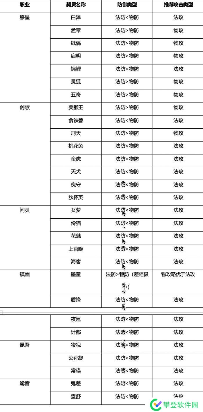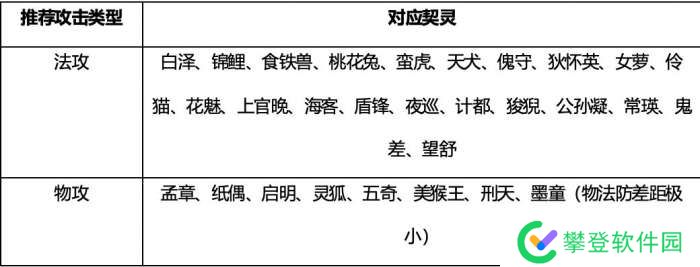 这里根据契灵的物法防御给大家整理了下它们的推荐攻击类型: