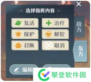 战斗中可用来提升实战效果的操作有很多,除了自由选定角色和主战契灵的技能、自由选定出招对象以外,还可以使用指挥功能指挥其他契灵出招,操纵角色使用特技、法宝、吃药,召唤更换主战契灵,选择防御和保护。