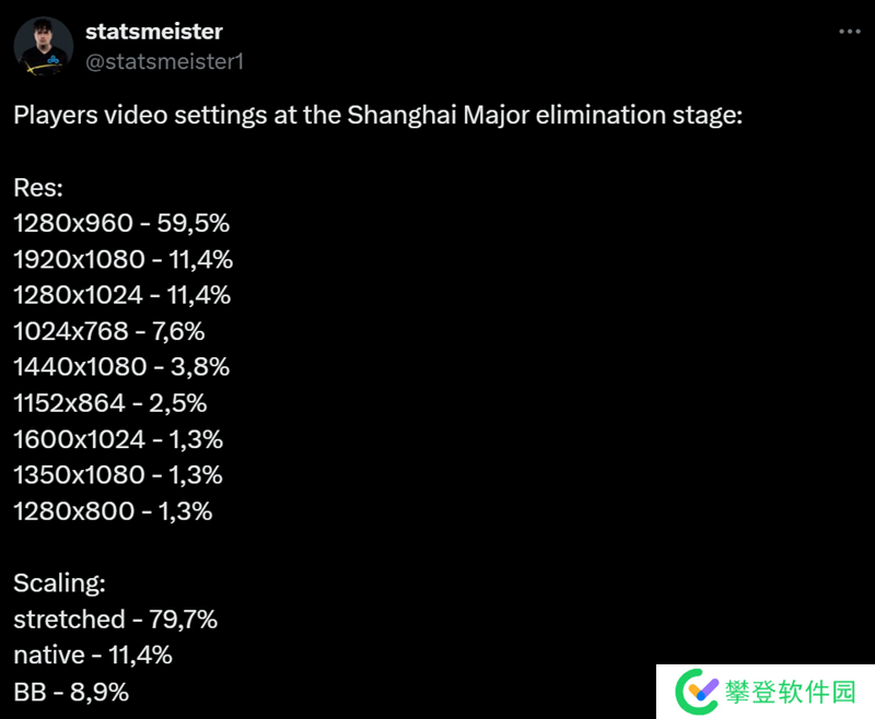 明天上海Major淘汰赛阶段就要正式打响,目前有CSer整理了本次Major开幕战阶段16支参赛队伍中职业哥的游戏分辨率设置情况。