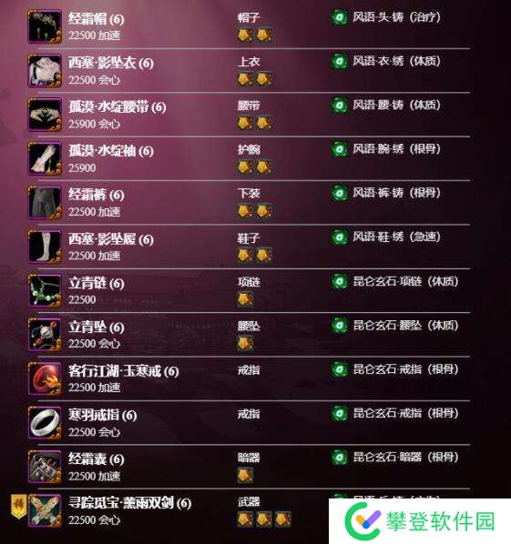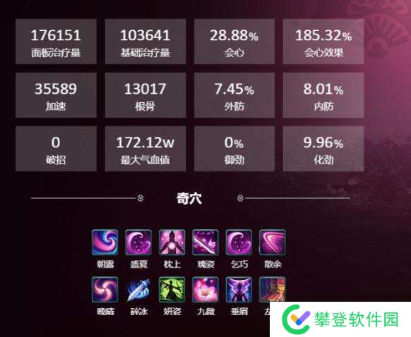 1、配装尽量堆根骨,会心纯疗随缘,新手推荐加速34056;