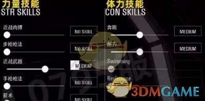 力量技能,: 步枪手枪游戏里面可以提升,没必要,近战武器跟箭术前期保你小命的,近战多拉一点,手枪少拉一点,五五也可以。