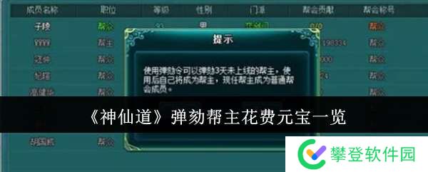 神仙道弹劾帮主要花费多少元宝?在神仙道游戏中,有很多玩家们不清楚神仙道弹劾帮主花多少元宝攻略,接下来我们给玩家们带来神仙道弹劾帮主花多少元宝,可在小编这里详细了解神仙道游戏所有攻略。