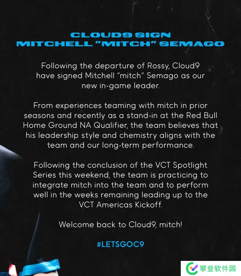VCT AMER赛区C9战队官宣与Rossy解除合同,原文大意如下: