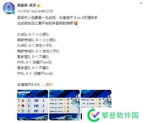 虎扑11月22日讯 军团杯首日战报:古德猫宁 8-0 无情铁手,久诚队未尝一胜
