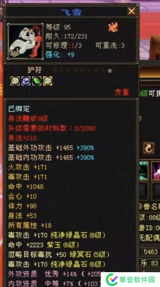这个四属性护符包含四个属性,加起来达到170点,还有额外的命中属性、体力属性和身法属性。